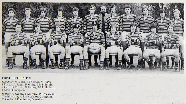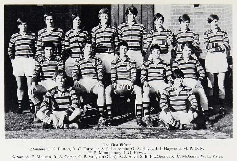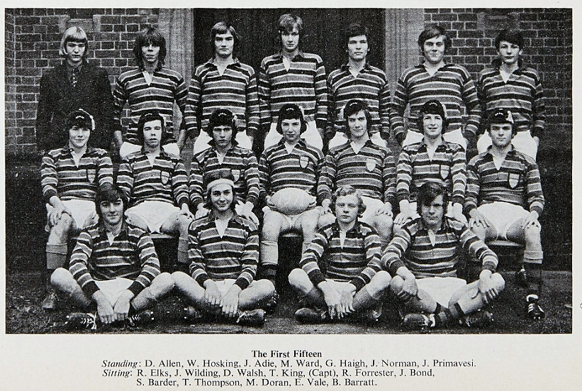 The Old Dowegians match was lost by the School, 8-23. Weak tackling let in E Osborn for a couple of tries, but it was the second half when the School really weakened, and the weight of the Old Boys pack proved significant. No record is available of the sides who played, but M Welch, I Hartley and E Osborn all feature, so it must have been a strong one.