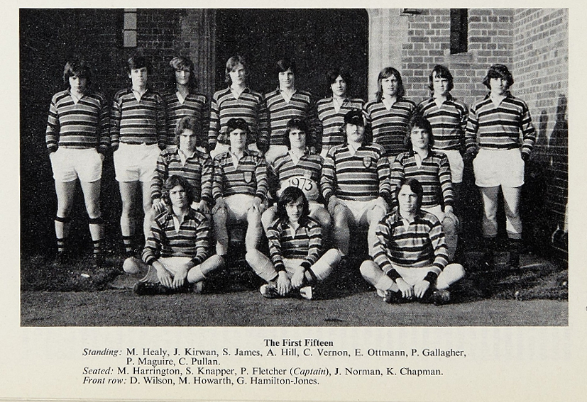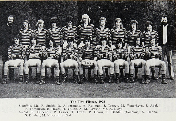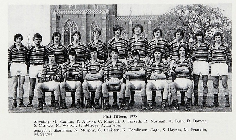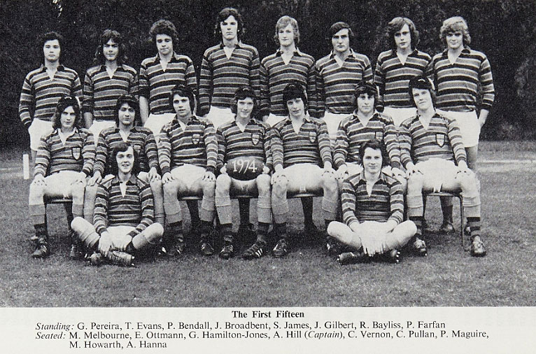 School team, in no particular order: S Dunbar, Capt., A Lawson, D Akkermans, M Gale, M Forrester, J Tracey, H Young, M Malloy, C Cetti, A Lavarello, C Mauduit, S Ellis, J Ward, M Hollings, A Abel, G Leniston, S Hayes, M Pereira, R Norman, P Walker, G Vernon, M Segrue, K Tomlinson, M Franklin, J Ellis, N Murphy.