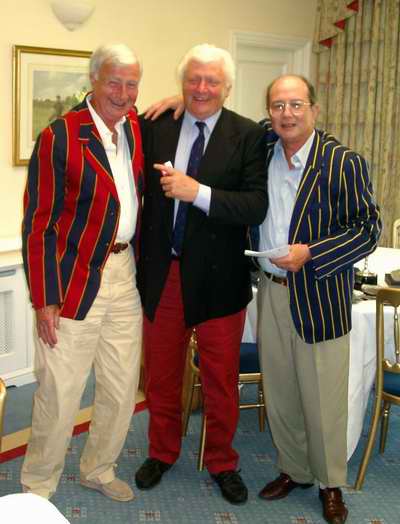 THE OLD DOWEGIAN GOLF SOCIETY Beaumont guest, Tony Waldeck receiving his prize from Aubrey and Dennis